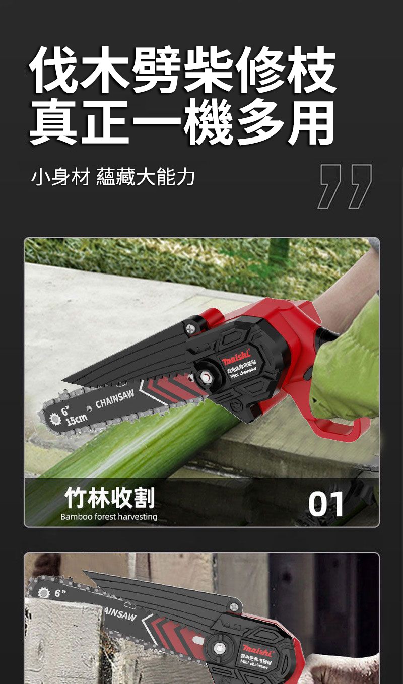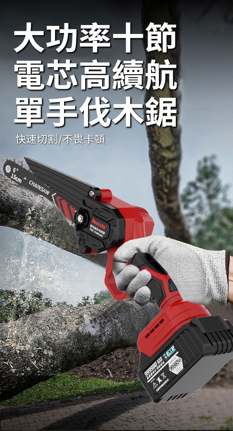 半小時前伐木神器登場【整機全新升級】德國MAISHI鋰電鏈鋸 單手操作 輕巧暴力 新品下殺僅NT$1380 - 【旗艦款】6寸電鏈鋸【9900Vf 一電一充】+鏈條*1