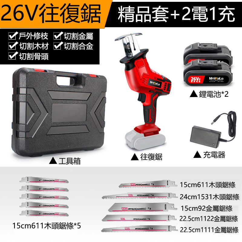 15分鐘前【德國精工鋰電鋸】鋼、鐵、磚頭、木材,統統都能鋸!續航久、充電快,方便攜帶,一機多用 - 26V德國精工往複鋸(機頭+1充2電)贈工具箱+5鋸條NT$2290