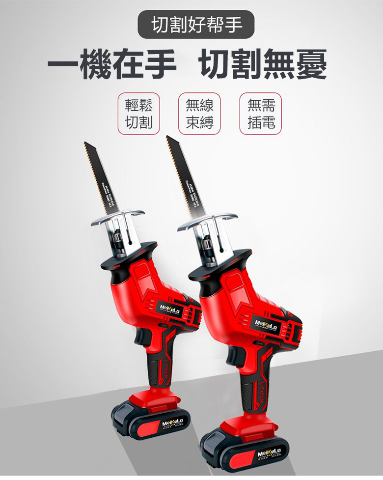 15分鐘前【德國精工鋰電鋸】鋼、鐵、磚頭、木材,統統都能鋸!續航久、充電快,方便攜帶,一機多用 - 26V德國精工往複鋸(機頭+1充1電)贈工具箱+5鋸條NT$1790
