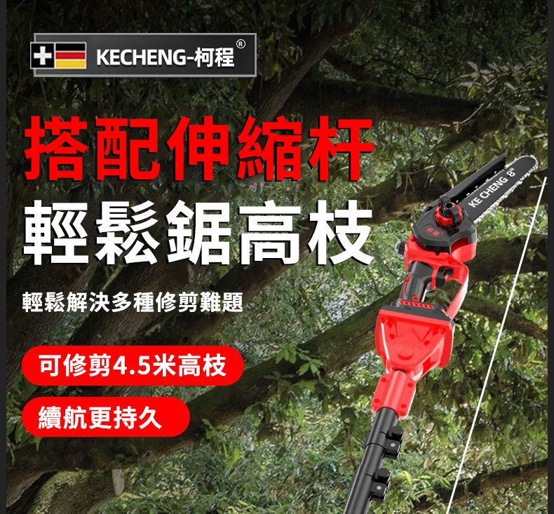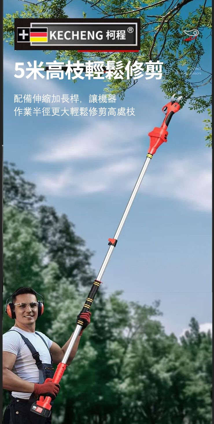 20分鐘前果農修枝好幫手】德國KECHENG進口電動伸縮鋰電鋸-5.5米高枝輕鬆鋸!動力強勁,果園工作不費力! - 可鋸4米伸縮桿+6吋鋰電鋸+修枝剪【雙電】NT$4690