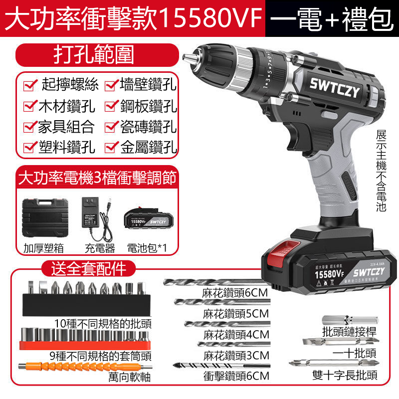 2分鐘前德國大功率 雙速衝擊鋰電鑽 純銅電機 無極變速 雙軸承設計 十年換新 - 進口衝擊15580VF塑箱2電+豪禮 NT$1980