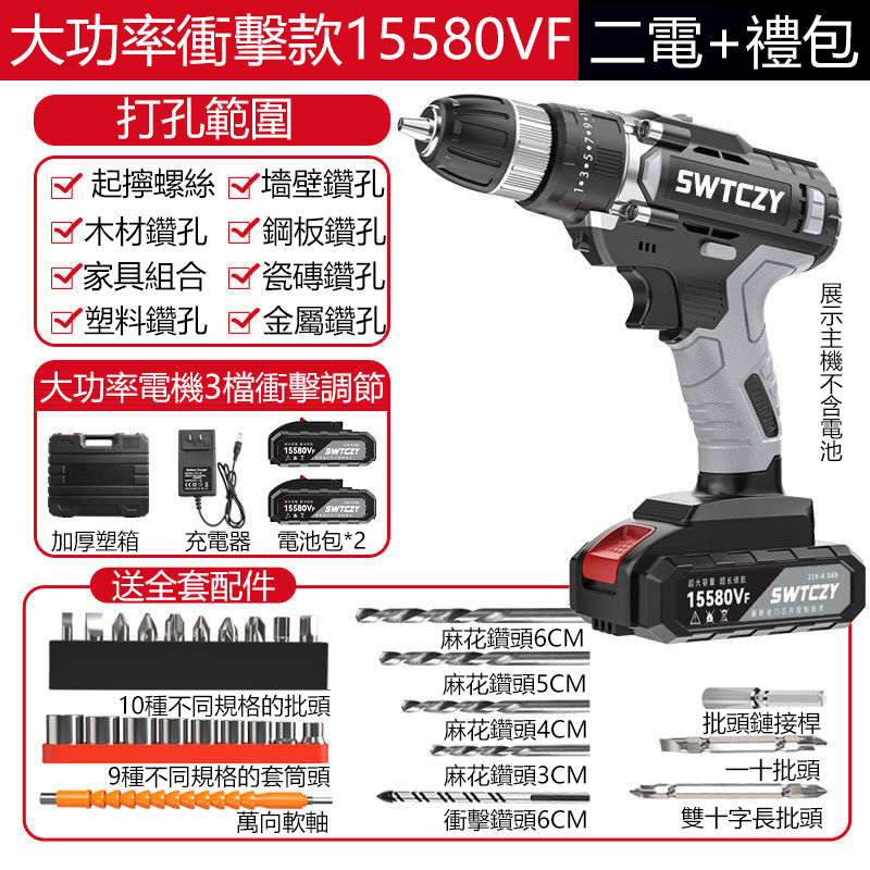 15分鐘前德國大功率 雙速衝擊鋰電鑽 純銅電機 無極變速 雙軸承設計 十年換新 - 進口衝擊15580VF塑箱2電+豪禮 NT$1980