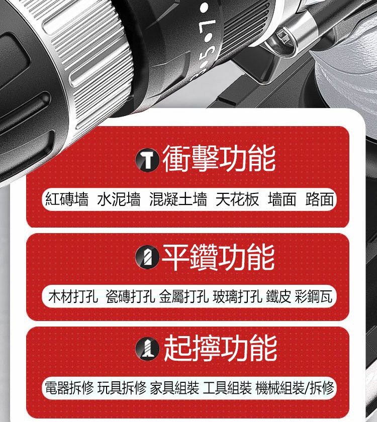 5分鐘前德國大功率 雙速衝擊鋰電鑽 純銅電機 無極變速 雙軸承設計 十年換新 - 進口衝擊15580VF塑箱2電+豪禮 NT$1980