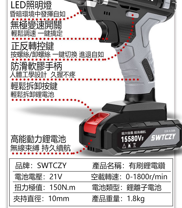 4分鐘前德國大功率 雙速衝擊鋰電鑽 純銅電機 無極變速 雙軸承設計 十年換新 - 進口衝擊15580VF塑箱2電+豪禮 NT$1980
