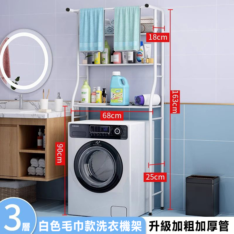 7分鐘前浴室收納必備!馬桶/洗衣機專用置物架,完美利用每一寸空間,整潔又實用! - 【白色】3層洗衣機置物架