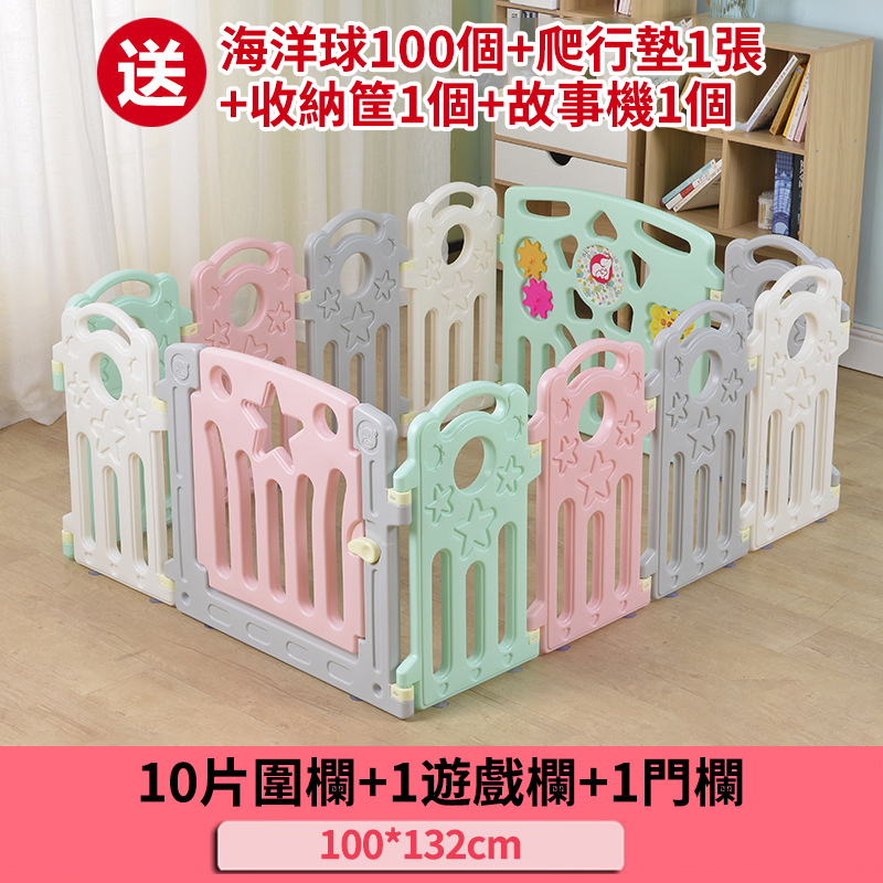半小時前愛他/她!就給他/她滿滿的愛!寶寶學步遊戲圍欄,呵護寶寶安全【週年特賣,買1送4】 - 可折疊普通款【送爬行墊+海洋球+故事機+收納籃】10圍欄+1遊戲欄+1門欄