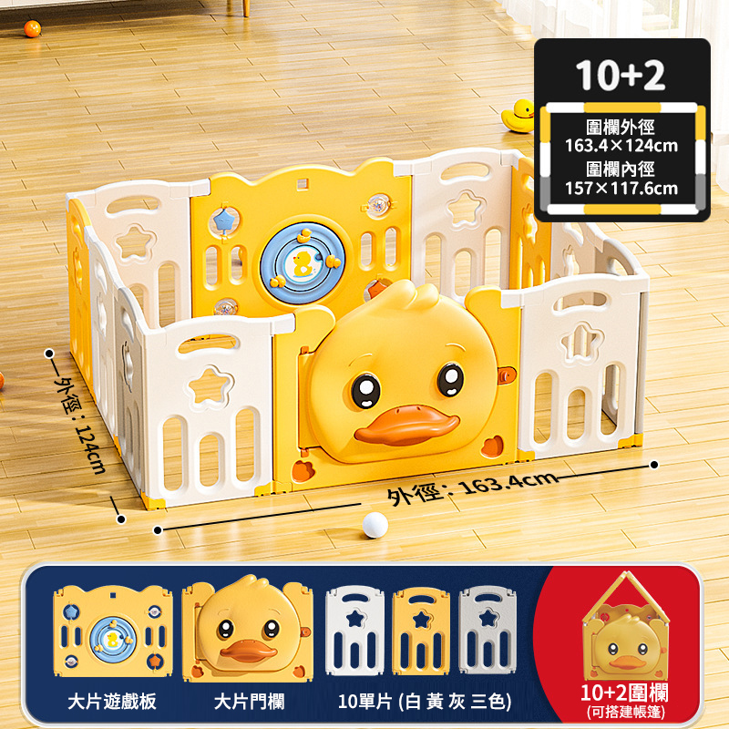 2分鐘前愛他/她!就給他/她滿滿的愛!寶寶學步遊戲圍欄,呵護寶寶安全【週年特賣,買1送4】 - 可折疊小鴨子款【12+2】163-164cm圍欄