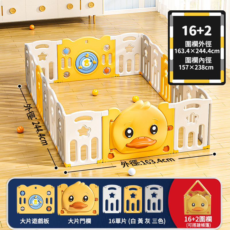 20分鐘前愛他/她!就給他/她滿滿的愛!寶寶學步遊戲圍欄,呵護寶寶安全【週年特賣,買1送4】 - 可折疊小鴨子款【16+2】163*244cm圍欄