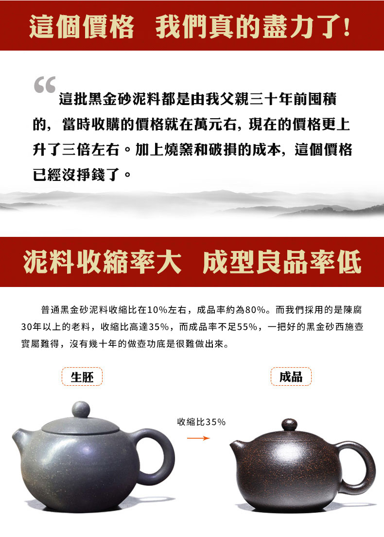 20分鐘前全手工紫砂壺 家藏三十年黑金沙原礦老料 大容量球孔西施壺 - 200CC黃金容量NTS1550