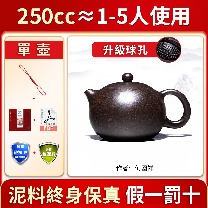 12分鐘前全手工紫砂壺 家藏三十年黑金沙原礦老料 大容量球孔西施壺 - 250CC中品容量NTS1650