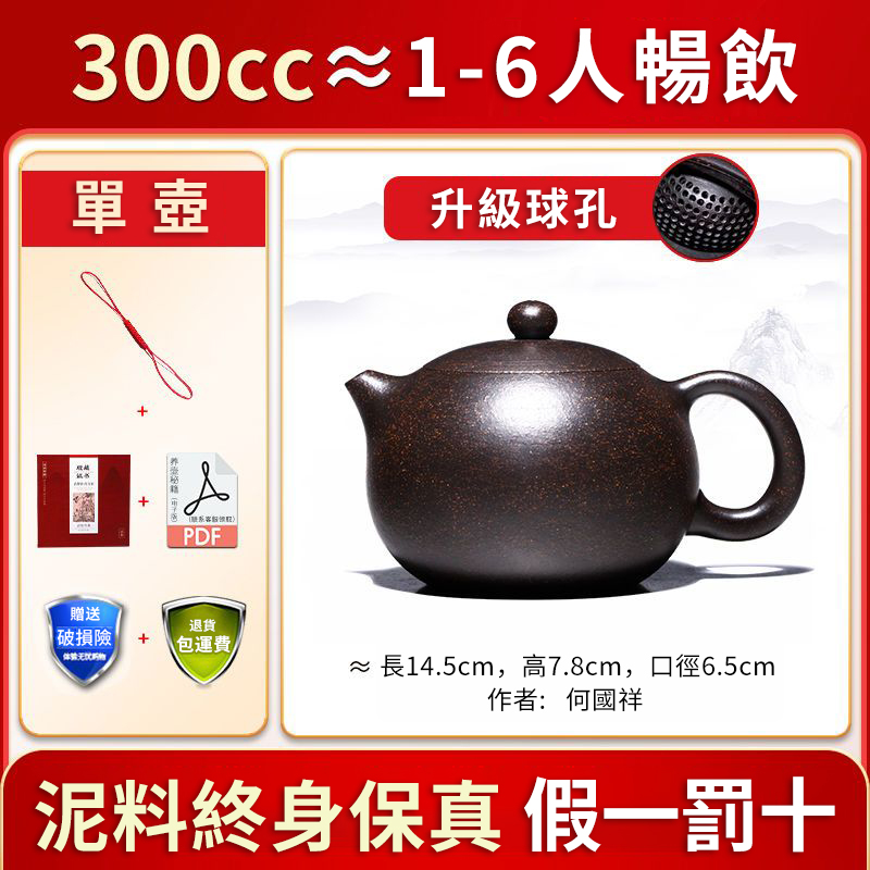 4分鐘前全手工紫砂壺 家藏三十年黑金沙原礦老料 大容量球孔西施壺 - 300CC暢飲容量NTS1750
