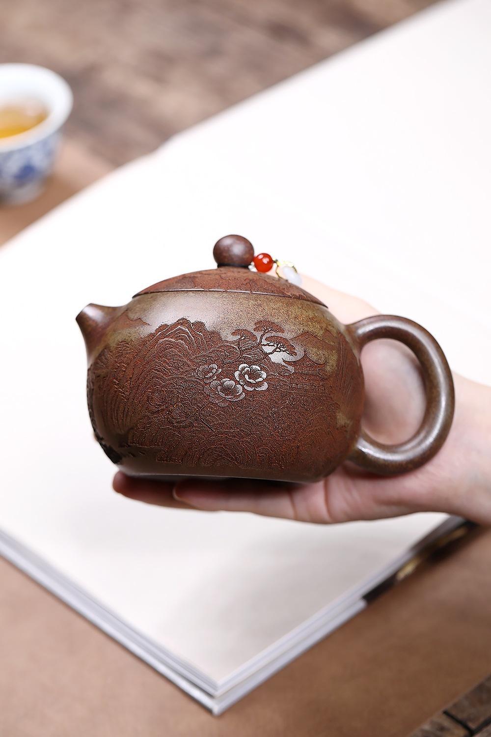 全手工紫砂壺 家藏三十年黑金沙原礦老料 大容量球孔西施壺