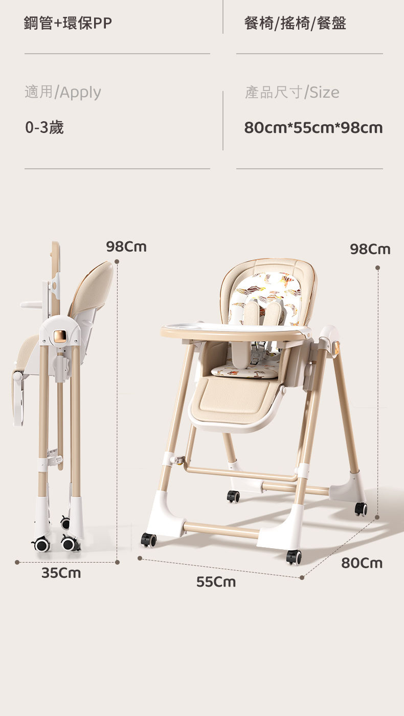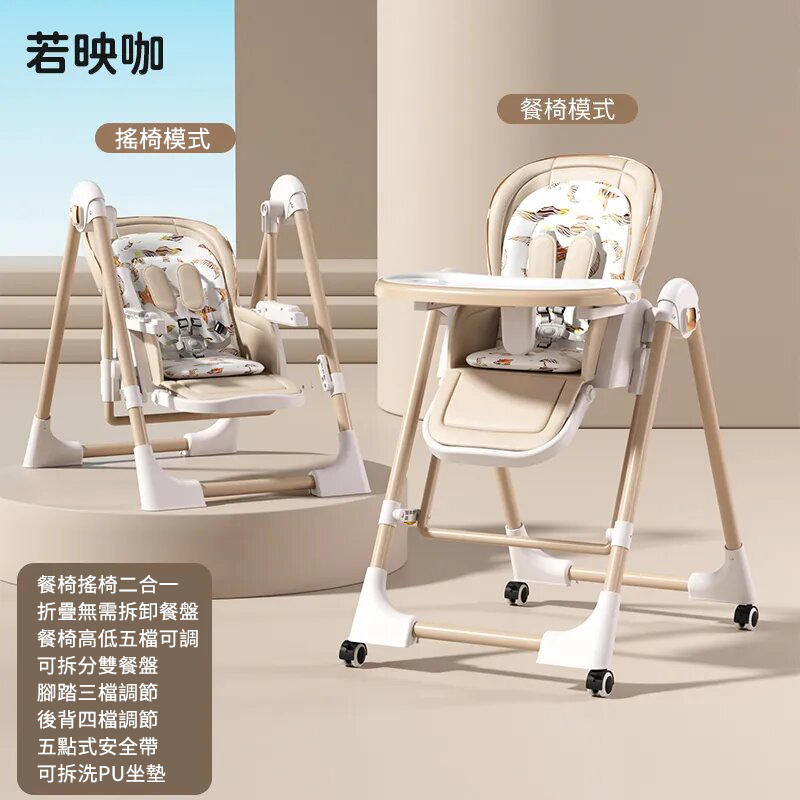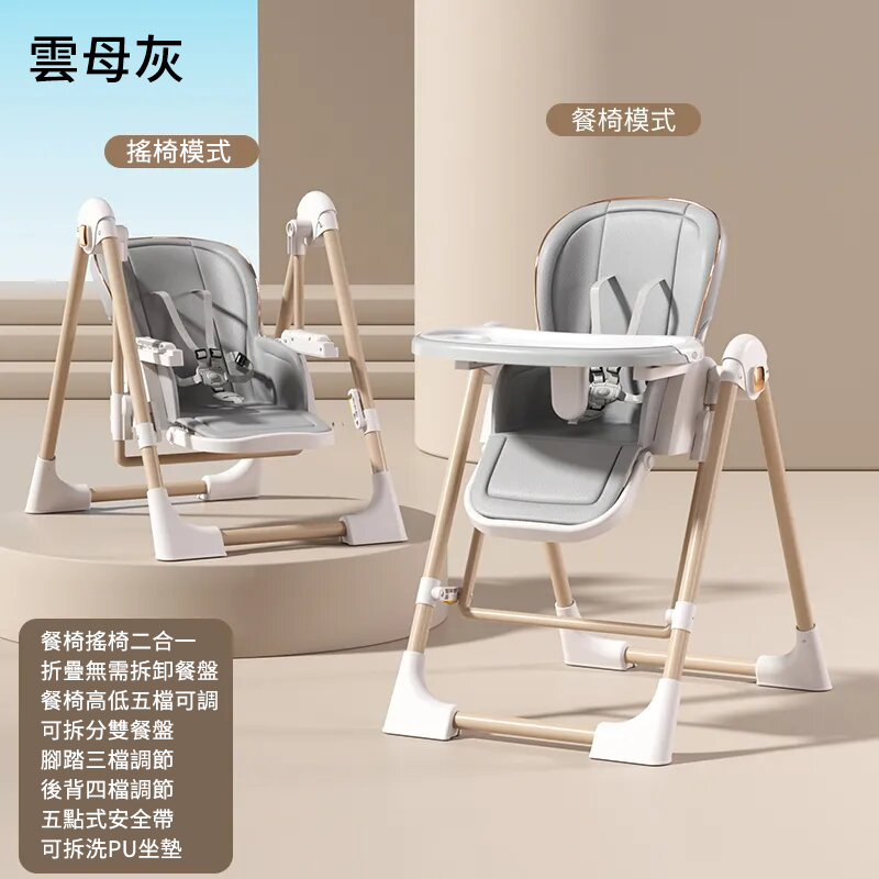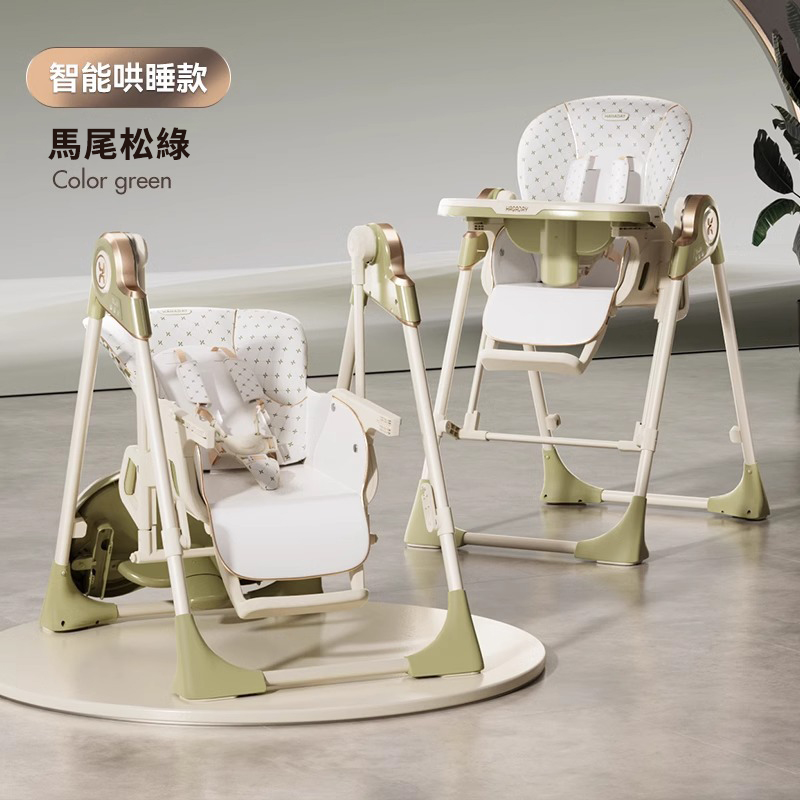 既是搖床又是餐椅【0-6歲寶寶可用】智能哄睡可坐可躺の百變餐椅,高矮調節,165°搖擺安全角度