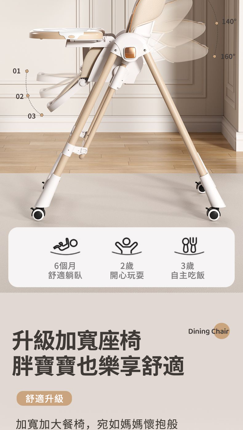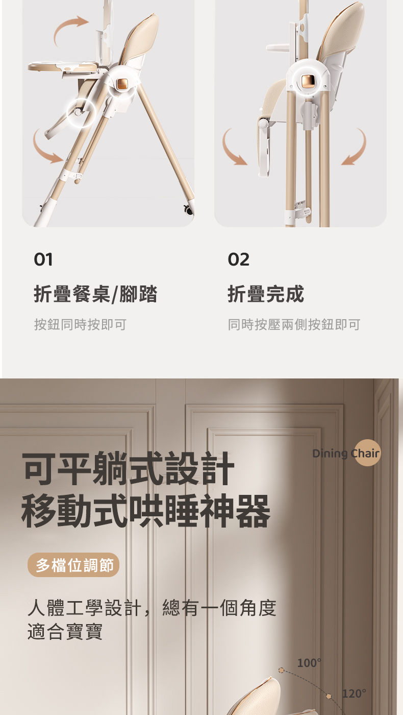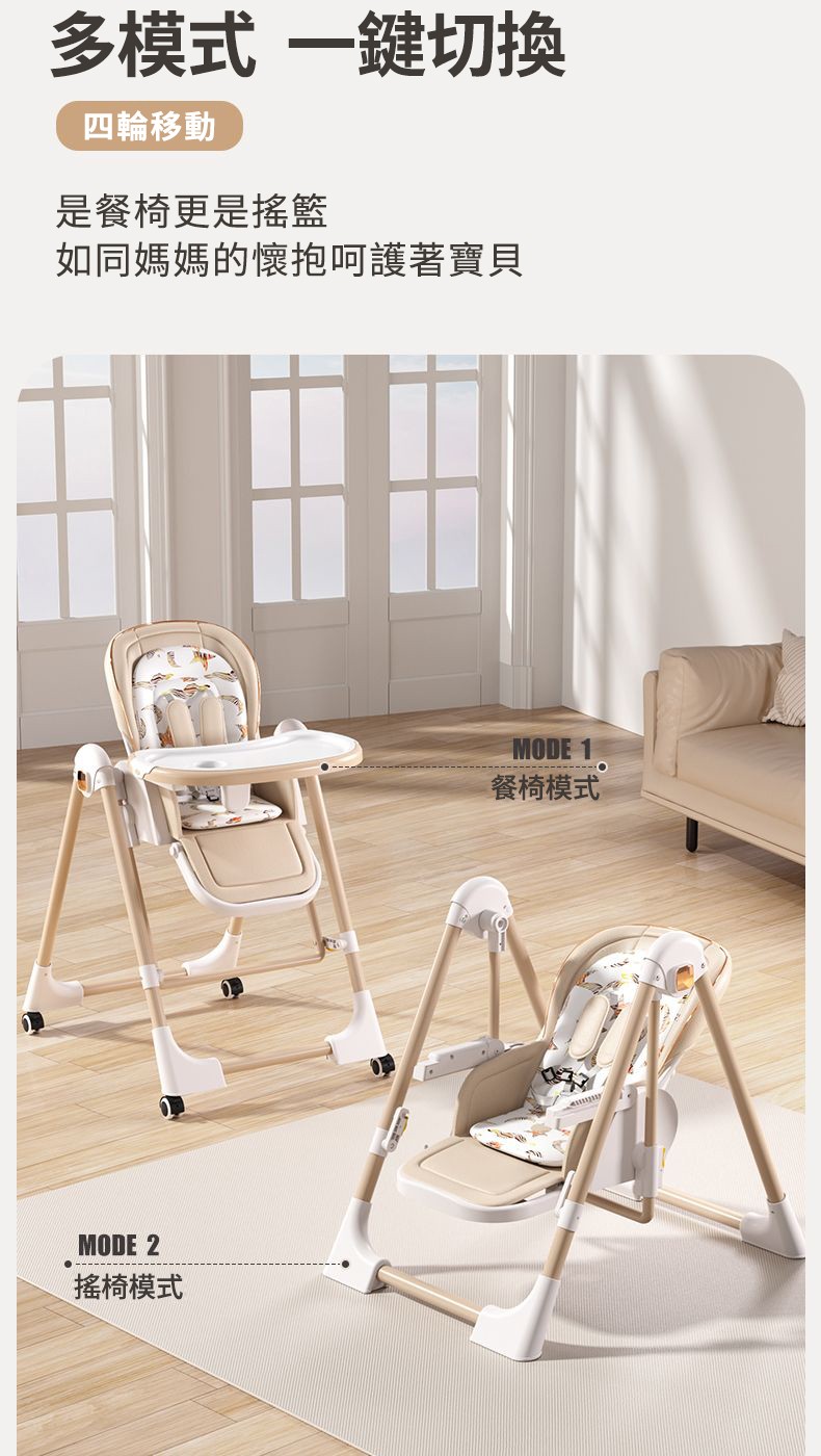 既是搖床又是餐椅【0-6歲寶寶可用】智能哄睡可坐可躺の百變餐椅,高矮調節,165°搖擺安全角度