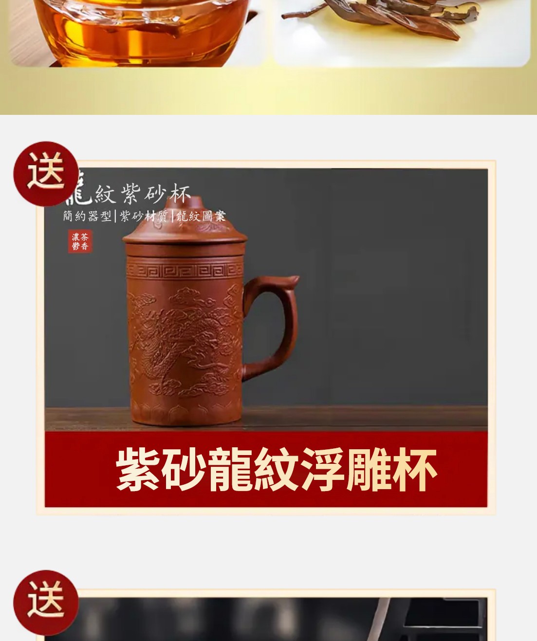 2分鐘前【蛇年到,禮真到】一次品嚐六大濃香型紅茶組合送精美[紫砂龍紋杯紫砂+紫砂一壺四杯+清明上河圖紫砂茶葉罐6個] - 六大紅茶+浮雕龍紋杯+清明上河圖紫砂茶葉罐6個---NT$1980