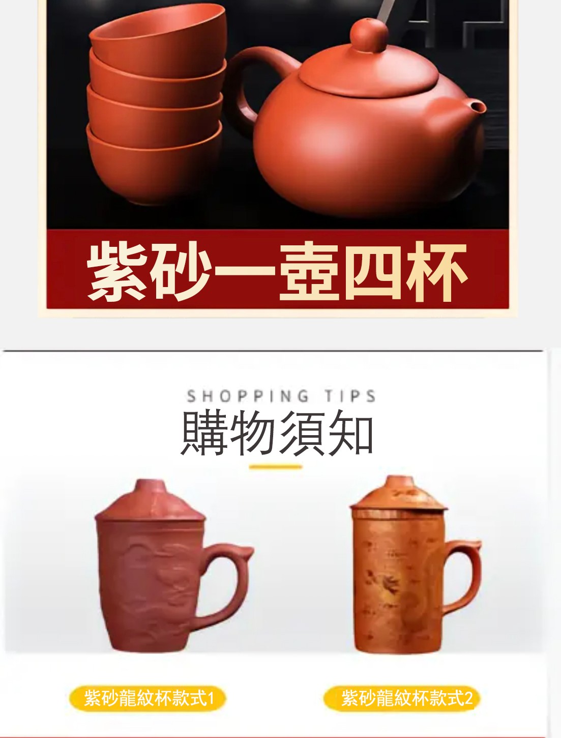 半小時前【蛇年到,禮真到】一次品嚐六大濃香型紅茶組合送精美[紫砂龍紋杯紫砂+紫砂一壺四杯+清明上河圖紫砂茶葉罐6個] - 六大紅茶+浮雕龍紋杯+清明上河圖紫砂茶葉罐6個---NT$1980