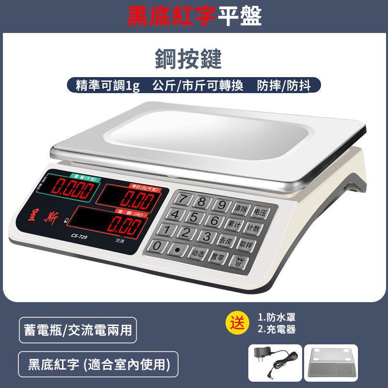 4分鐘前工廠聯合促銷!僅需千元【台灣省電待機王】德國進口商用電子秤 加厚加固超耐用 精準顯示為生意保駕護航 - 商用款(分度值可達1克)紅字+大平盤