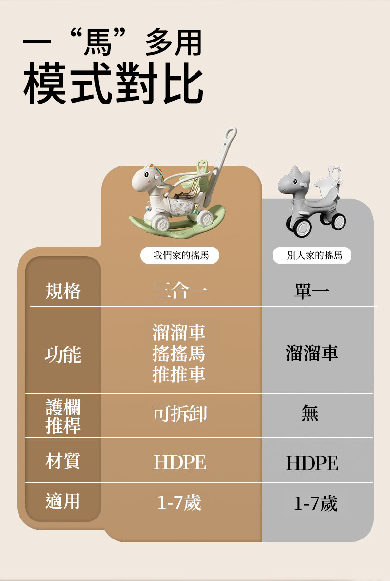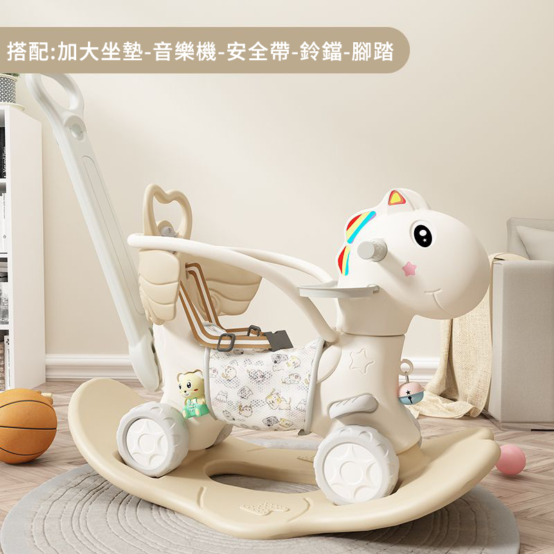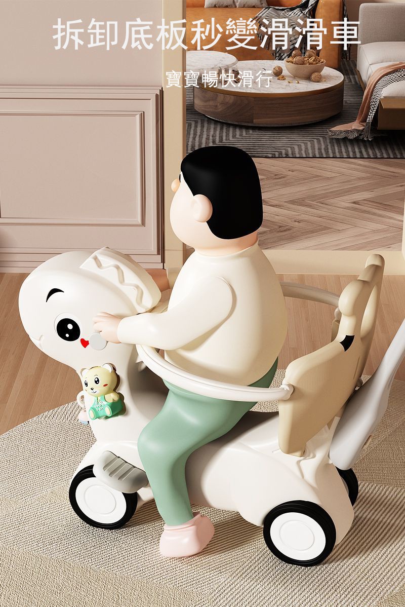 2分鐘前【大減價!大減價!】臺灣熱銷丨1-3週嵗生日禮物搖椅馬兩用搖搖車滑行車 兒童搖搖馬 - 加寬輪(摩卡色)大坐墊+餐盤+靠背+推桿護欄