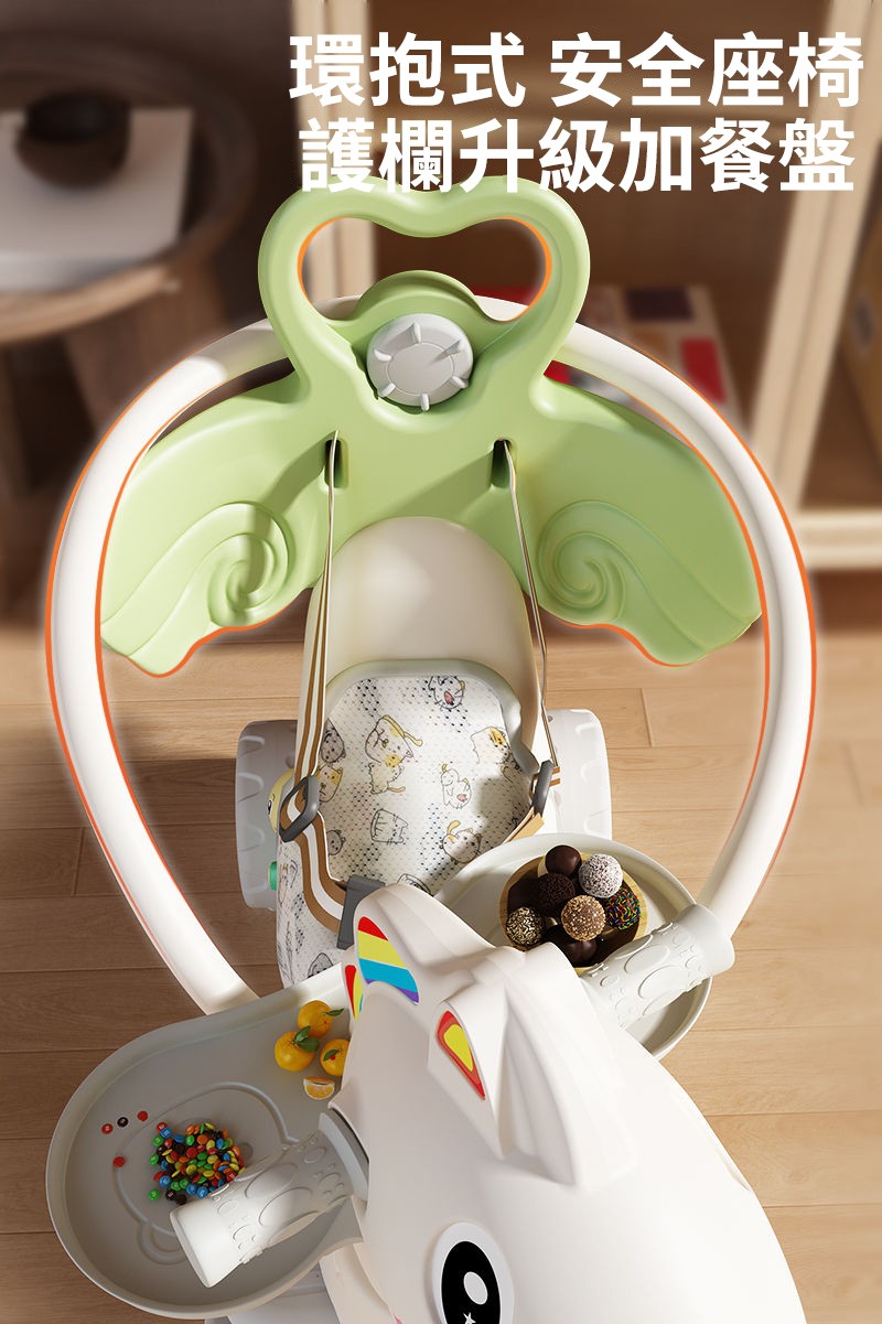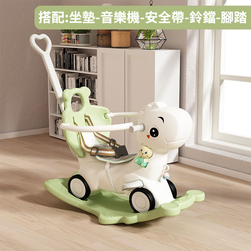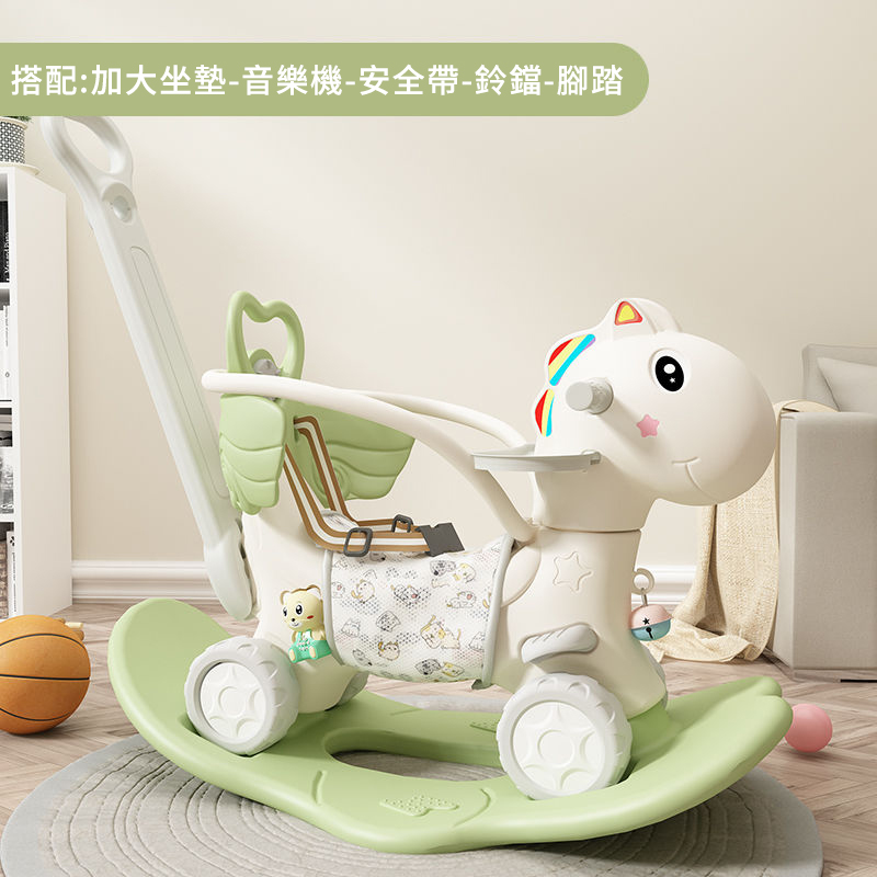 7分鐘前【大減價!大減價!】臺灣熱銷丨1-3週嵗生日禮物搖椅馬兩用搖搖車滑行車 兒童搖搖馬 - 加寬輪(青椰綠)大坐墊+餐盤+靠背+推桿護欄