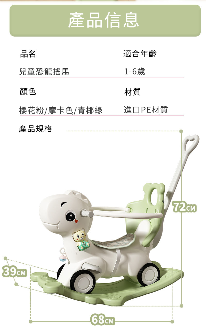 20分鐘前【大減價!大減價!】臺灣熱銷丨1-3週嵗生日禮物搖椅馬兩用搖搖車滑行車 兒童搖搖馬 - 普通輪(青椰綠)靠背+推桿護欄
