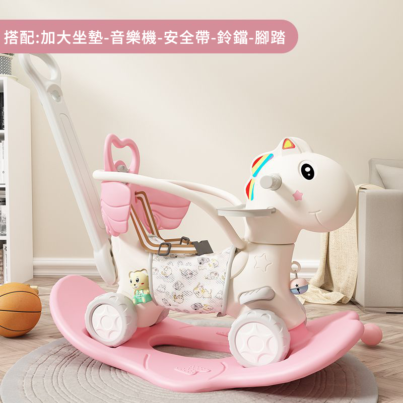 半小時前【大減價!大減價!】臺灣熱銷丨1-3週嵗生日禮物搖椅馬兩用搖搖車滑行車 兒童搖搖馬 - 普通輪(櫻花粉)靠背+推桿護欄