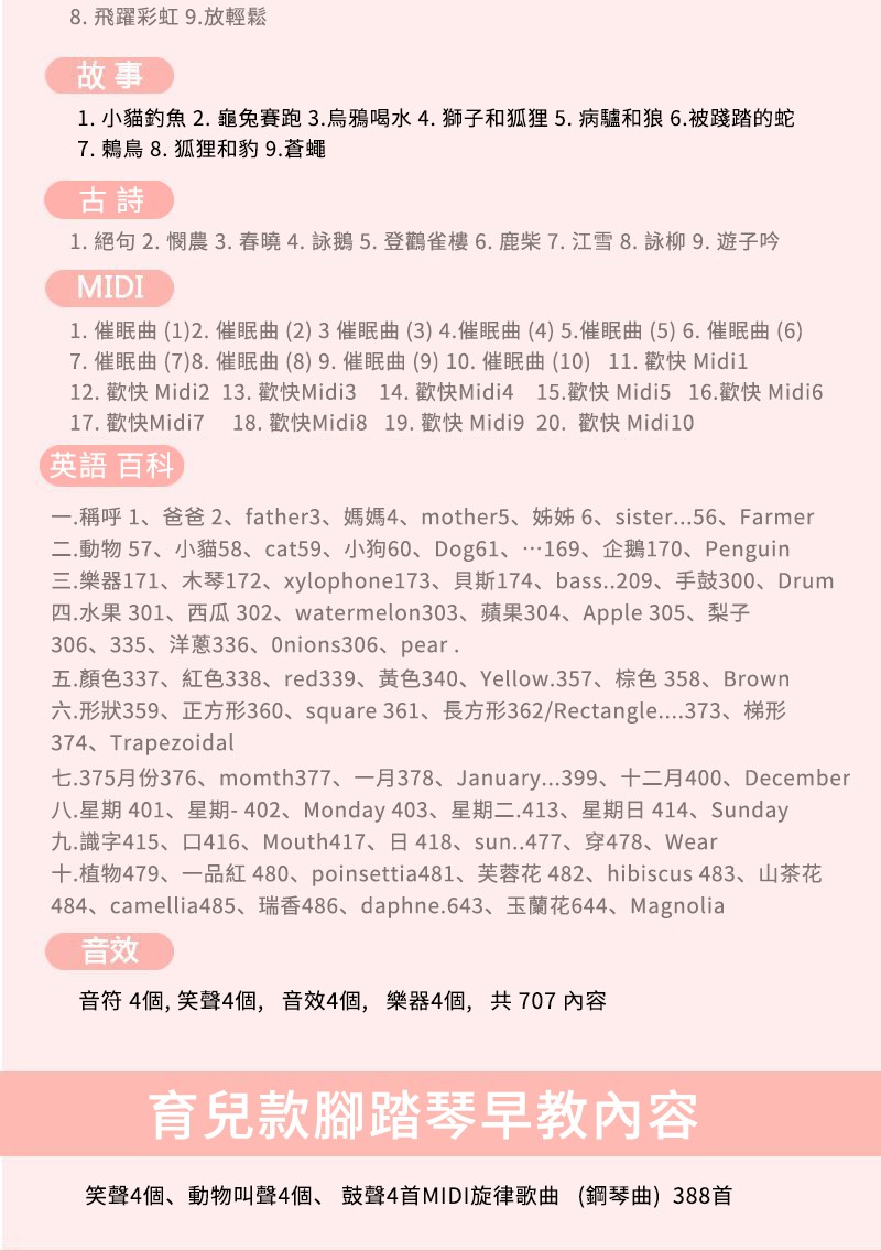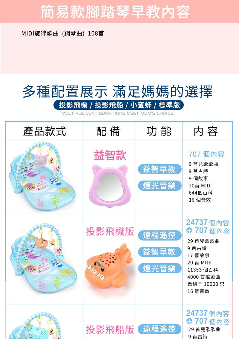 20分鐘前【破價預警】【寶寶成長特惠】0-1歲寶寶的神奇玩具-健身架音樂腳踏琴玩具,益智啟蒙好幫手! 讓寶寶從此放下手機、iPad! - 兒歌益智款【送充電】707內容+夜燈飛機+護欄
