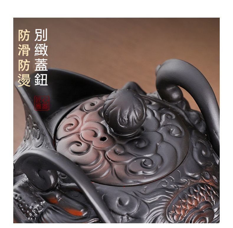 ✩ 絕版收藏!正宗宜興紫砂朱泥長嘴供春壺 ❘ 黃金大容量500cc ❘ 純手工浮雕匠製,泡茶更香
