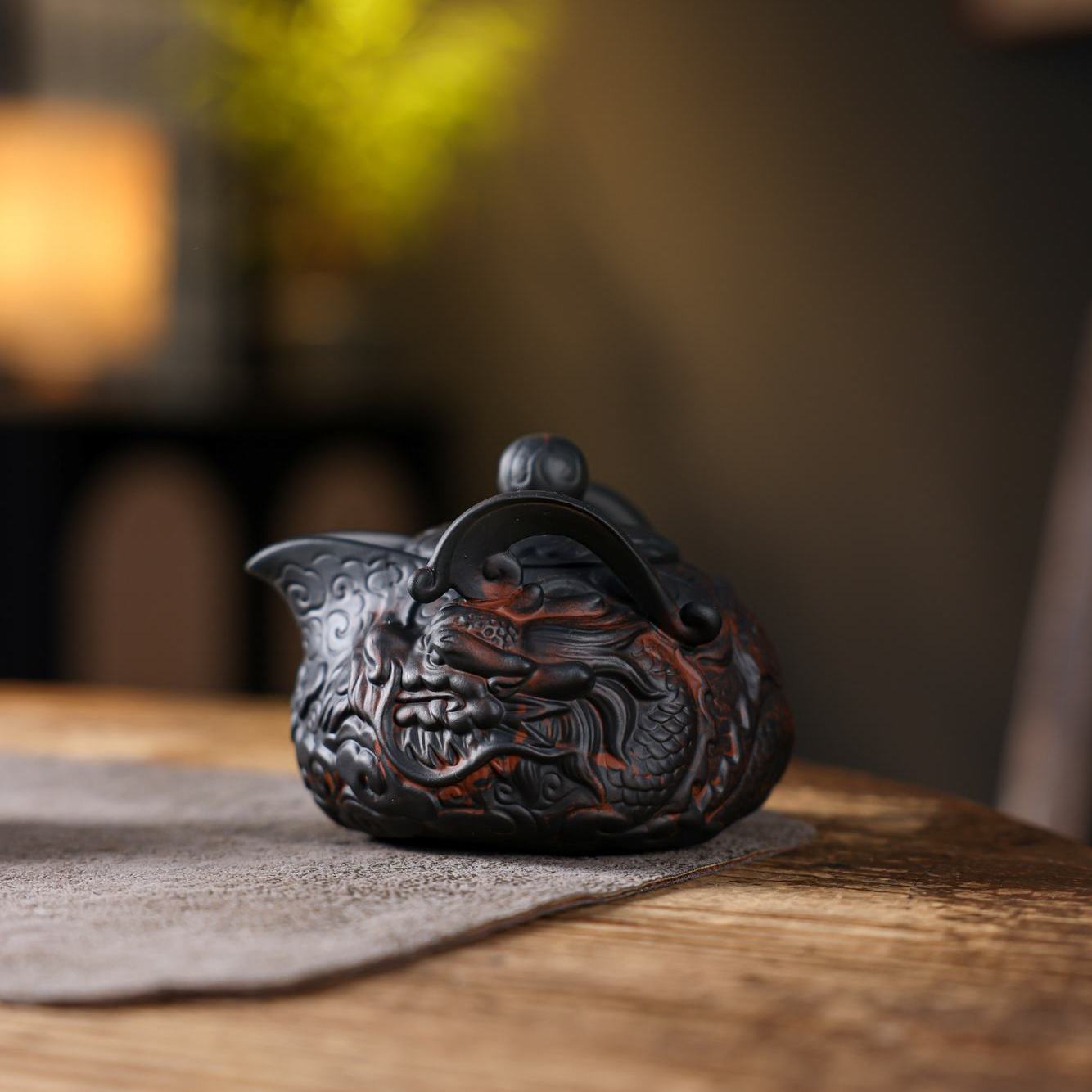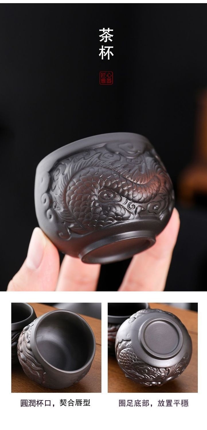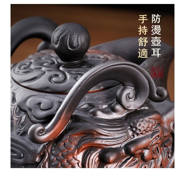 經典傳承・匠心打造|【大師純手工紫陶鳳鳴壺】復古跳刀紋漢瓦壺(一壺兩杯)・黃金大容量300cc + 球孔過濾,鳴音設計顯格調